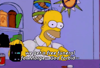 we get a free funeral for Marge-- God forbid-- and I can run background checks on whomever I want, Moammar. Homer, please, please. Ix-nay on the oammar-May.