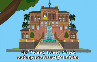 Eh! Tweet, tweet. Check out my expensive fountain. (CHIRPING) Dad, look.