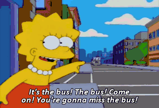 It's the bus! The bus! Come on! You're gonna miss the bus! That's one small step-- Whoa! Hi, Larry.