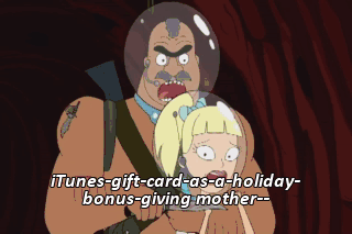 iTunes-gift-card-as-a-holiday- bonus-giving mother-- Come on! Aah! Get off!
