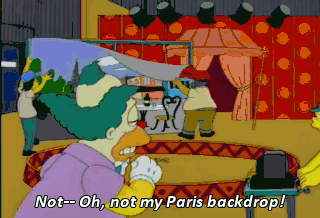 Not-- Oh, not my Paris backdrop! How am I gonna make fun of the Frogs? Wait. If I could only stay on the air, I'd have 100% of the audience. Think of the ratings.