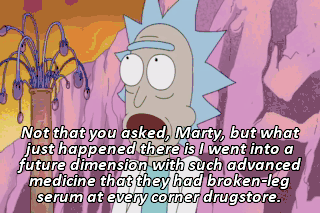 Not that you asked, Marty, but what just happened there is I went into a future dimension with such advanced medicine that they had broken-leg serum at every corner drugstore.