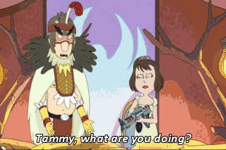 Tammy, what are you doing? Sit your Bird ass down. Tammy? Birdperson!! No!!