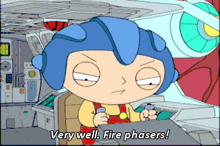 Very well. Fire phasers! Oh, Jeez, my duodenum's actin' uP!