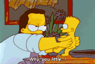 Why, you little..! He did that on purpose! How could he? He's only ten minutes old. Bart, Lisa, come here for a minute.