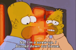 No, I'm a screw-up. I burned down our house.