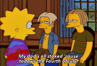 My dad's all stoked 'cause today's the Fourth of july.