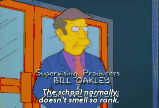 The school normally doesn't smell so rank. Ah, washbasin fresh. That funk must be coming from one of the classrooms. Ugh! Ah, poor fellow, crushed by his own water bottle.