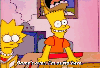 Game's over. I'm outta here. Wait a minute, you little cheater. You're not going anywhere until you tell me what a "kwyjibo" is. "Kwyjibo." Uh--