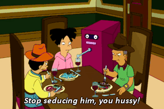 Stop seducing him, you hussy! Dad! I'm attracted to Bender, not this emotionless wine bucket! Hopes deleted.