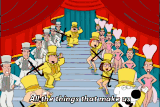 All the things that make us Laugh and cry He's a family guy Hey, where's Cleveland? Doesn't he have a relative in town or something?