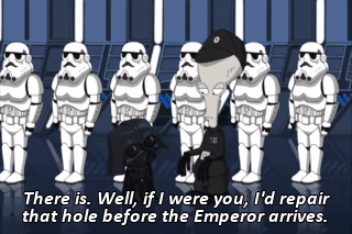 There is. Well, if I were you, I'd repair that hole before the Emperor arrives. The Emperor is coming here?