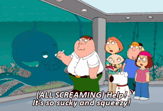 (ALL SCREAMING) Help! It's so sucky and squeezy!