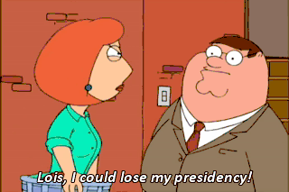 Lois, I could lose my presidency! Too bad! I've already lost more than that! Not my rainbow socks with the individual toes? No. I've lost my respect for you. Oh. Because I need those socks.