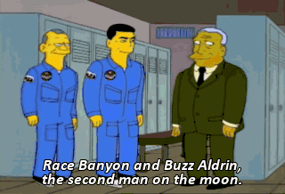 Race Banyon and Buzz Aldrin, the second man on the moon. Second comes right after first. So, Barney, we hear you're kickin' ass. I, uh, don't think this contest is over yet, Buzz,