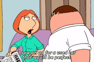 I saw an ad for a used car that would be perfect. Oh, No, Lois. A guy at work bought a car out of the paper. Ten years later, bam! Herpes. I'm buying our car from a dealer, and that's that.