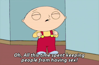 Oh, All this time spent keeping people from having sex! Now I know how the Catholic Church feels. Ba-zing!