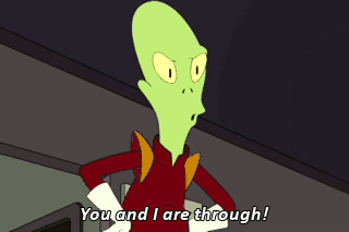 You and I are through! (GASPS) Aw! Here's a little song I wrote to cheer you up. It's called... Let's go already