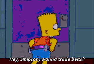 Hey, Simpson, wanna trade belts? Well, not really, 'cause yours is just a piece of extension cord. Hey, dude, he's raggin' on your cord. Get him! No running! Time for a little evasive action.