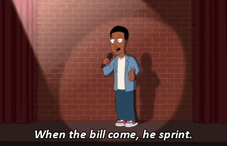 When the bill come, he sprint. CARTER: Yes! So many of them are delinquent in payment.