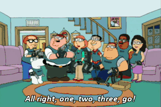 All right, one, two, three, go! Missed, you ass. Damn it, Peter, that hurt. Relax, Quagmire.
