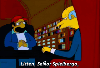 Listen, SeÑor Spielbergo, I want you to do for me what Spielberg did for Oskar Schindler. Schindler es bueno. SeÑor Burns es el diablo. Listen, Spielbergo, Schindler and I are like peas in a pod.