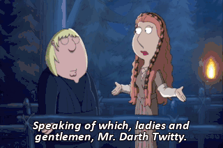 Speaking of which, ladies and gentlemen, Mr. Darth Twitty. (AUDIENCE CHEERING) - (THE GAMES THAT DADDIES PLAY - PLAYING)