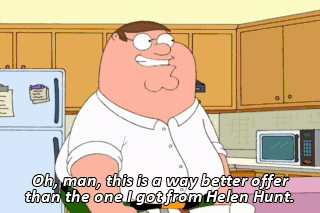 Oh, man, this is a way better offer than the one I got from Helen Hunt. You wanna have sex? No. No, no, no, no, no. No. No.