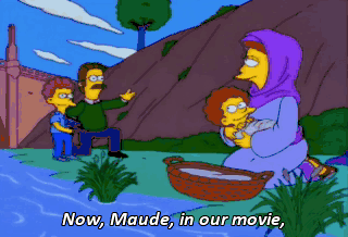 Now, Maude, in our movie, you lay baby Moses in the basket, then put it among the reeds. Okay? Lights, camera, act-didilly-dotilly- doodilly-action, jackson!