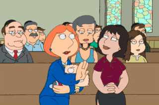 I didn't mean "oh, my God," either. I know--I know he's your God, too. I... Shh. And on this day, the Sabbath, we gather here to-- Uh-oh!