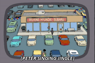 (PETER SINGING JINGLE) Mom, the game's about to start. Where's Dad? I don't know, Chris. And I'm starting to get worried. I think all this success might be going to his head.