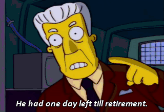 He had one day left till retirement. La la la la la Well, time to replenish the hot-dog roller. La la Oops! Oh, no. It is encrusted with filth. Oh, well. Let's sell it anyway.