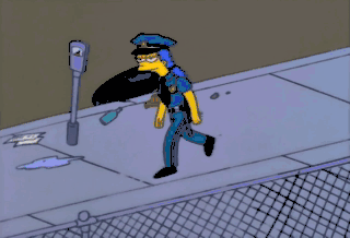 Everywhere I look someone is breaking the law. Dog, no leash. Man littering. Horse not wearing diaper. Car parked across three handicapped spaces. Homer! Hey, Marge. How's my little piglet?