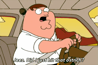 Jeez. Did I just hit that ostrich? - No. - Are you sure? He's fine. Keep going.