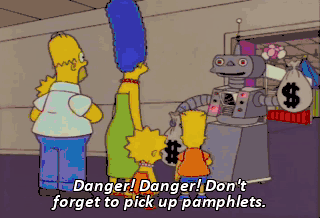 Danger! Danger! Don't forget to pick up pamphlets. I'll handle this.