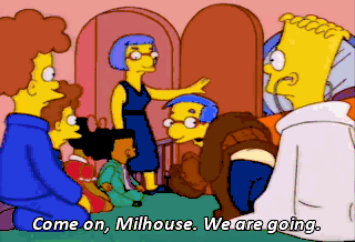 Come on, Milhouse. We are going. Oh, can't I come home later? There's not going to be a home later. Oh, okay. Ta-ta! I'm off to the beauty salon! Good night. Thanks for coming. We'll see you. Bye-bye.