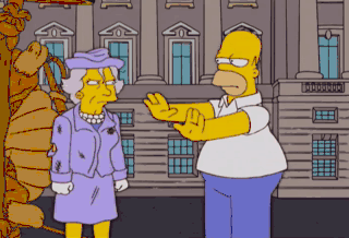 (SCOFFS) Your Majesty? (MIMICS WHIPPING) Dad, you rear-ended the Queen of England!