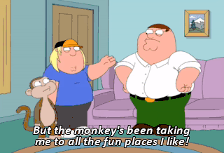 But the monkey's been taking me to all the fun places I like!