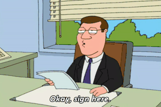 Okay, sign here. You know what? You can probably go ahead and cancel that.