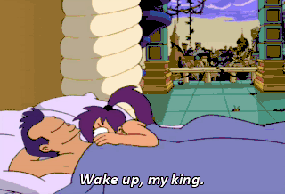 Wake up, my king. Oh, geez, what a night. Make me some coffee, would ya? Uh, sure. Okay. What do you take with that? Pancakes and sausage.