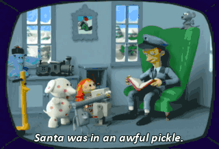 TV ANNOUNCER 2: And now back to Mr. McGrew's Christmas Carol.