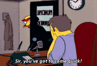 Sir, you've got to come quick! There's a dog runnin' around in the air ducts! I understand. Children, this is Principal Skinner. Remain calm. There is a dog in the vents.