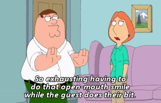 So exhausting having to do that open-mouth smile while the guest does their bit.