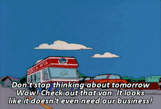 Don't stop thinking about tomorrow Wow! Check out that van. It looks like it doesn't even need our business!