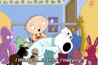 I think I'm... I think I'm dying. Jane Fonda. (STUTTERS) Is that? Is that right? Yeah, that's right, buddy. Totally Jane Fonda. It's gonna be okay. Your pal Stewie is right here.