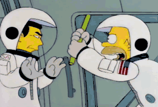 Oh! Aw, stupid bar! Wait, Homer. If that bar holds, we just might make it back to Earth. Hmm. And I'll bash you good! Give me that!