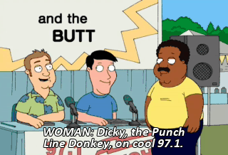 WOMAN: Dicky, the Punch Line Donkey, on cool 97.1. MAN: Cool weekends. On the radio. MAN 2: In the morning. - FM. - Cool. WQHG. Cool weekends. In the morning. On 97.1.