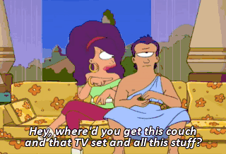 Hey, where'd you get this couch and that TV set and all this stuff?