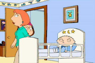 ahh! What the hell are you doing? Watching you sleep, cutie pie. Why you sick, sick little moo cow. Well, you shall watch no more! Stewie!