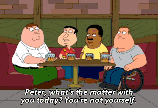 Peter, what's the matter with you today? You're not yourself. Guys, I went to Dr. Hartman yesterday, and he did things to my fanny. (GLASS SMASHING) (SOBBING) Peter, it's okay.